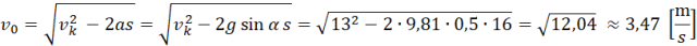 Odp. Prędkość początkowa saneczkarza wynosiła 3,47