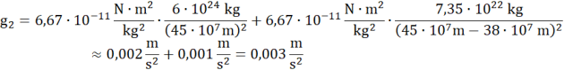 Przyspieszenie to suma przyspieszeń pochodzących od Ziemi i od Księżyca: