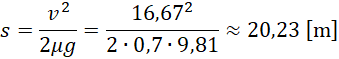 Oblicz, jaka jest droga samochodu, który jedzie z prędkością 60 , a współczynnik tarcia pomiędzy jezdnią a oponami wynosi 0,7.
