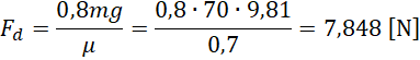Wartość siły tarcia to wartość siły nacisku pomnożona przez współczynnik tarcia. Jest to siła, która będzie hamowała grotołaza. Przekształcasz następnie wzory tak, aby uzyskać szukane siły.