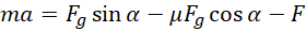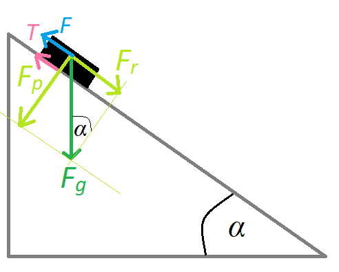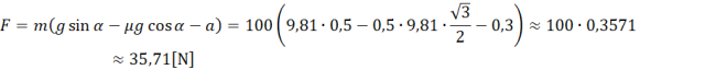 Narysuj sobie opisaną sytuację. Wyznacz wartości sił za pomocą funkcji trygonometrycznych. Na rysunku przedstawiono opisane siły. Napisz równanie II zasady dynamiki Newtona, dzięki której obliczysz wartość siły naciągu liny.