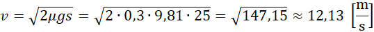 Wartość siły tarcia to wartość siły nacisku pomnożona przez współczynnik tarcia. Jest to siła, która będzie hamowała samochód. Przekształcasz następnie wzór na drogę tak, aby uzyskać prędkość.