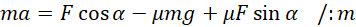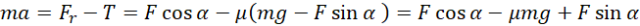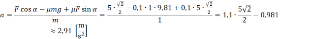Wartość siły tarcia to wartość siły nacisku pomnożona przez współczynnik tarcia. Jest to siła, która będzie hamowała ciało. Przekształcasz następnie wzory tak, aby uzyskać przyspieszenie ciała. Oznaczenia sił podane są na rysunku w rozwiązaniu.
