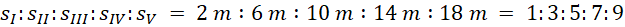 Zapisz stosunek sI: sII: sIII: siV: sV