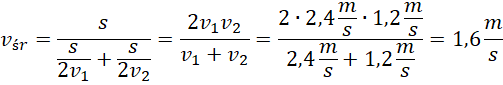 Oblicz szybkość średnią Eli, jeśli pierwszą połowę drogi przebiega z szybkością 2,4 m/s, a drugą połowę z szybkością 1,2 m/s.