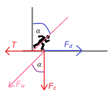 Łyżwiarz jedzie po lodzie po okręgu o promieniu 2 m, przy czym ma prędkość 2 . Oblicz kąt, pod jakim łyżwiarz musi odchylić się od pionu, aby być w równowadze.