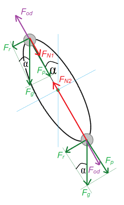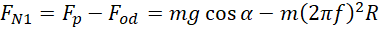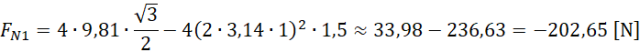 Narysuj sobie siły działające na kule w obu położeniach. Podana częstotliwość obrotów sugeruje, że prędkość kuli jest stała, a zatem działające siły muszą się równoważyć. Siła naciągu liny równoważy siłę odśrodkową oraz prostopadłą składową grawitacji. W wyniku jedna z sił ma wartość ujemną. Wynika to z tego, że wektory tych sił mają przeciwny zwrot.