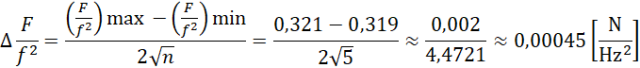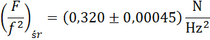 Tabelkę uzupełniasz na podstawie obliczenia, które jest zapisane w górnym wierszu. Dane do obliczeń masz podane również w tej tabeli. Średnią wyników obliczasz jako sumę wyników podzieloną przez liczbę pomiarów. Maksymalna niepewność pomiarowa to średnia z maksymalnego i minimalnego pomiaru podzielona przez pierwiastek z liczby pomiarów. Mając niepewność i średnią, możesz zapisać wynik.