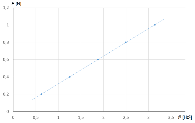 W tabeli przedstawiono wynik doświadczenia uczniów sprawdzające wzór na wartość siły dośrodkowej. Doświadczenie to zilustrowano na rysunkach powyżej. Zrób w arkuszu kalkulacyjnym wykres zależności i sprawdź, czy jest to zależność proporcjonalna.
