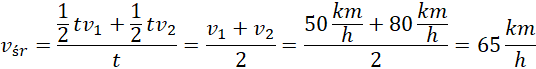 Oblicz szybkość średnią kierowcy, jeśli przez pierwszą połowę czasu jechał z szybkością średnią 50 km/h, a przez drugą połowę z szybkością średnią 80 km/h.