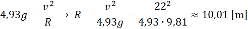 Pasażer o masie 60 kg na rollercoasterze w najniższym punkcie przejeżdża z prędkością 79,2 . Odczuwa wtedy przeciążenie, które jest 5,93 razy większe od warunków normalnych. Twoim zadaniem jest obliczyć promień rollercoastera.