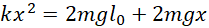 Największe przeciążenie, czyli moment, kiedy siła bezwładności zrównoważy siłę sprężystości liny, skoczek będzie odczuwał wtedy, kiedy energia potencjalna maksymalnej wysokości osiągnie wartość energii potencjalnej sprężystości liny.