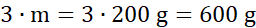Na siłomierz działają łącznie odważniki o łącznej masie: 3m + m = 4m