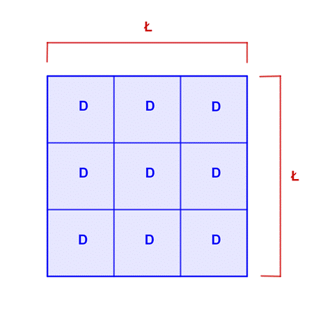 1 łokieć kwadratowy można przedstawić jako kwadrat podzielony na 9 części zawierających dłonie.