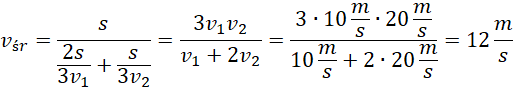 Oblicz szybkość średnią motocyklisty na drodze, jeśli wiadomo, że 2/3 drogi przejechał z szybkością 10 m/s, a pozostałą 1/3 drogi z szybkością 20 m/s.