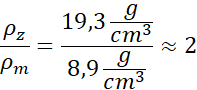 Gęstość złota jest 2 razy większa od gęstości miedzi.
