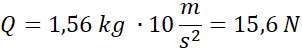 Ciężar bryłki żelaza wynosi 15,6 N.
