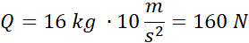 Ciężar deski o masie 16 kg wynosi 160 N.