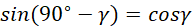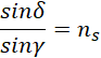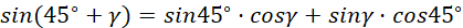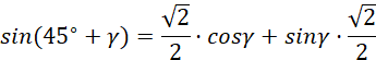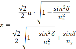 Skąd, dla sinusa kąta padania na dłuższą przeciwprostokątną, masz: