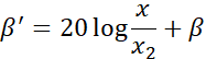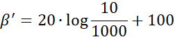 Rozpisujemy poziom natężenia dźwięku wysyłanego przez róg dla dwóch przypadków, następnie korzystając z tego, że moc akustyczna dźwięku jest zawsze taka sama, niezależnie od odległości obserwatora do źródła wyznaczamy iloraz natężeń dźwięku i obliczamy szukany poziom natężenia, odejmując stronami wzory.