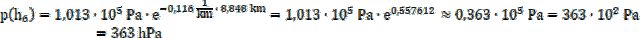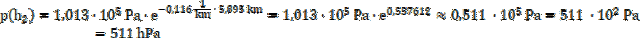 Odczytaj z tabeli wysokości szczytów górskich i wyraź je w km, a następnie podstaw dane do wzoru na ciśnienie atmosferyczne, które jest zależne od wysokości nad poziomem morza i wyraża się wzorem: