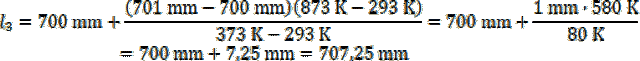 Wyznacz długość brązowej rurki w temperaturze 600°C, wiedząc, że w temperaturze 20°C rurka wykonana z tego materiału ma długość 700 mm, a w temperaturze 100°C jest ona równa 701 mm.
