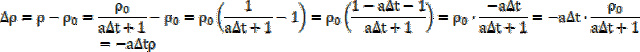 Udowodnij, że zmiana gęstości wyrażana jest jako ∆ρ = -aρ∆t, wiedząc, że przyrost objętości określa wzór ∆V = aV0∆t.