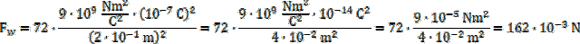 jest sumą wartości sił składowych, a jej zwrot jest z nimi zgodny. Wyznacz każdą z ich wartości, korzystając z prawa Coulomba, które mówi, że siłę elektrostatyczną wyraża wzór