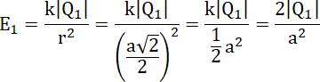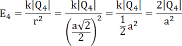 Skorzystaj z metody równoległoboku, aby wyznaczyć wypadkowy wektor natężenia. Zauważ, że wypadkowy wektor natężenia ma długość równą przekątnej kwadratu, którego bok jest równy długości wektora