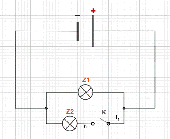 Zauważ, że żarówka Z2 i klucz są połączone szeregowe, a żarówka Z1 jest do nich połączona równolegle.