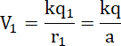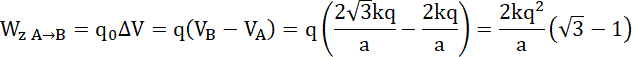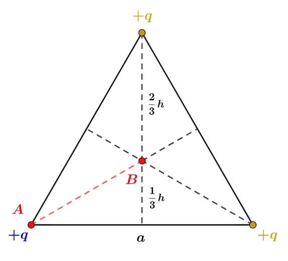 – odległość między ładunkiem a badanym punktem (dla punktu A jest równa długości boku trójkąta równobocznego, a dla B –