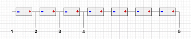 Oczywiście między przewodami 4 i 5 jest możliwość utworzenia przewodów, ale nie stworzy nam to kolejnej wartości napięcia, więc tworzymy minimalną ilość przewodów, ustawiając ostatni z nich na ostatnim ogniwie.