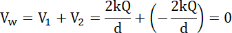Wyznacz wartość wypadkowego potencjału pola jako sumę potencjałów pochodzących od poszczególnych źródeł, korzystając ze wzoru na potencjał