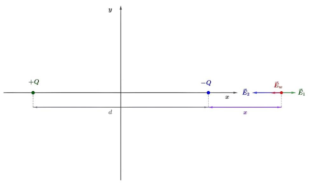 od środka dipola elektrycznego, który jest tworzony przez dwa różnoimienne ładunki punktowe o jednakowych wartościach bezwzględnych, które są oddalone od siebie o