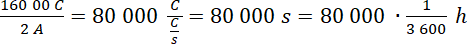 Pojemność akumulatora informuje nas jaki ładunek (q) przepływa w pewnym czasie (t), a natężenie prądu (I) to stosunek tego ładunku do czasu, w jakim przepłynął przez punkt obwodu. Dokonując przekształceń, wyznaczamy czas (rozładowania akumulatora).