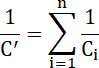 jest równa sumie odwrotności pojemności kondensatorów tworzących ten układ.