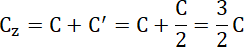Wyznaczamy pojemność zastępczą układu kondensatorów: