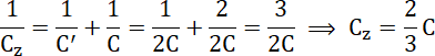 1. szeregowo: odwrotność pojemności zastępczej kondensatora