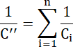 jest równa sumie odwrotności pojemności kondensatorów tworzących ten układ.