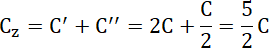 1. szeregowo: odwrotność pojemności zastępczej kondensatora