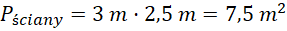 Pole powierzchni ściany wynosi 7,5 m2