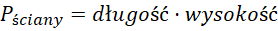 Pole powierzchni prostokątnej ściany to długość pomnożona przez wysokość:
