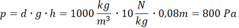 Należy pamiętać o zamianie wysokości z centymetrów na metry. Wartość ciśnienia wyliczamy ze wzoru na ciśnienie hydrostatyczne.