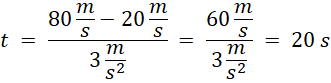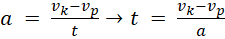 Ponieważ znane jest przyspieszenie, prędkość końcowa i początkowa możesz obliczyć, ile będzie trwała zmiana prędkości: