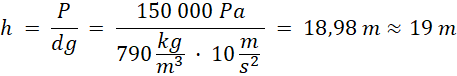 Oblicz wysokość słupa alkoholu wywierający dane ciśnienie.