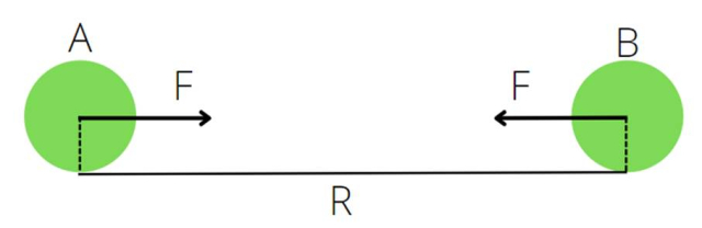 Wektory sił będą mieć taką samą wartość, lecz przeciwny zwrot – kulki przyciągają się wzajemnie z tą samą siłą.