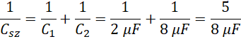 Oblicz energię układu dwóch kondensatorów połączonych szeregowo, jeśli mają one pojemności i , a przyłożona do nich różnica potencjałów wynosi 300 V.