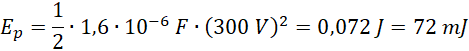 Korzystamy ze wzoru na energię kondensatora. Obliczamy pojemność zastępczą układu kondensatorów w połączeniu szeregowych i podstawiamy odpowiednie wartości liczbowe.