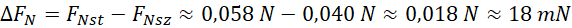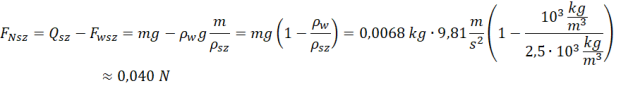 Wykorzystaj I zasadę dynamiki Newtona dla kulek umieszczonych w wodzie. Oblicz wartości obu sił naciągu, a następnie oblicz ich różnicę.