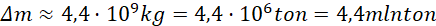 Wartość tej masy jest tracona przez Słońce w wyniku promieniowania: